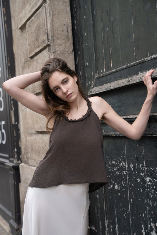 Sold outCELINE VEST 抽鬚棉麻削肩背心